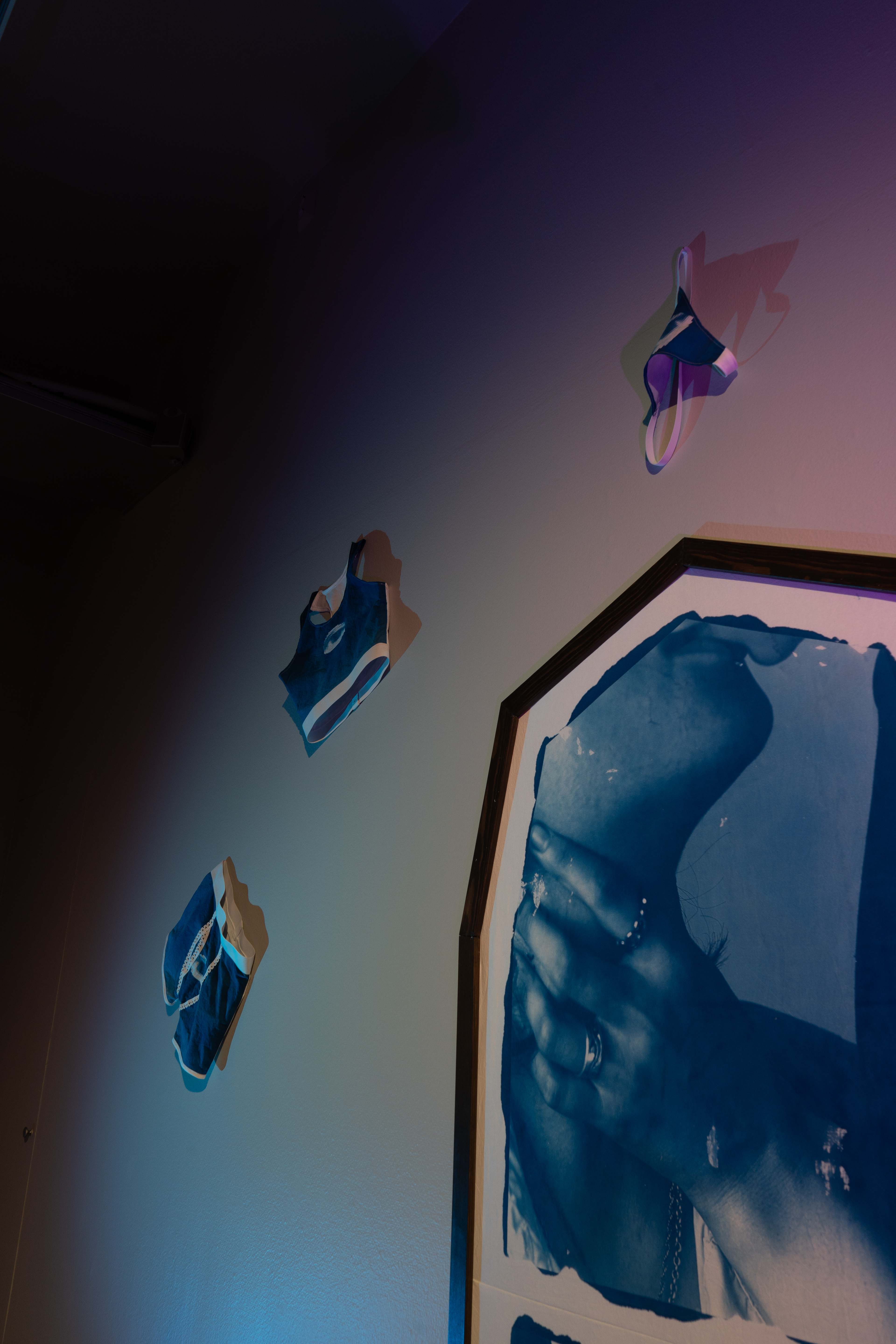 Nobody's business, cyanotype on cotton/mixed media/sewing, 2025